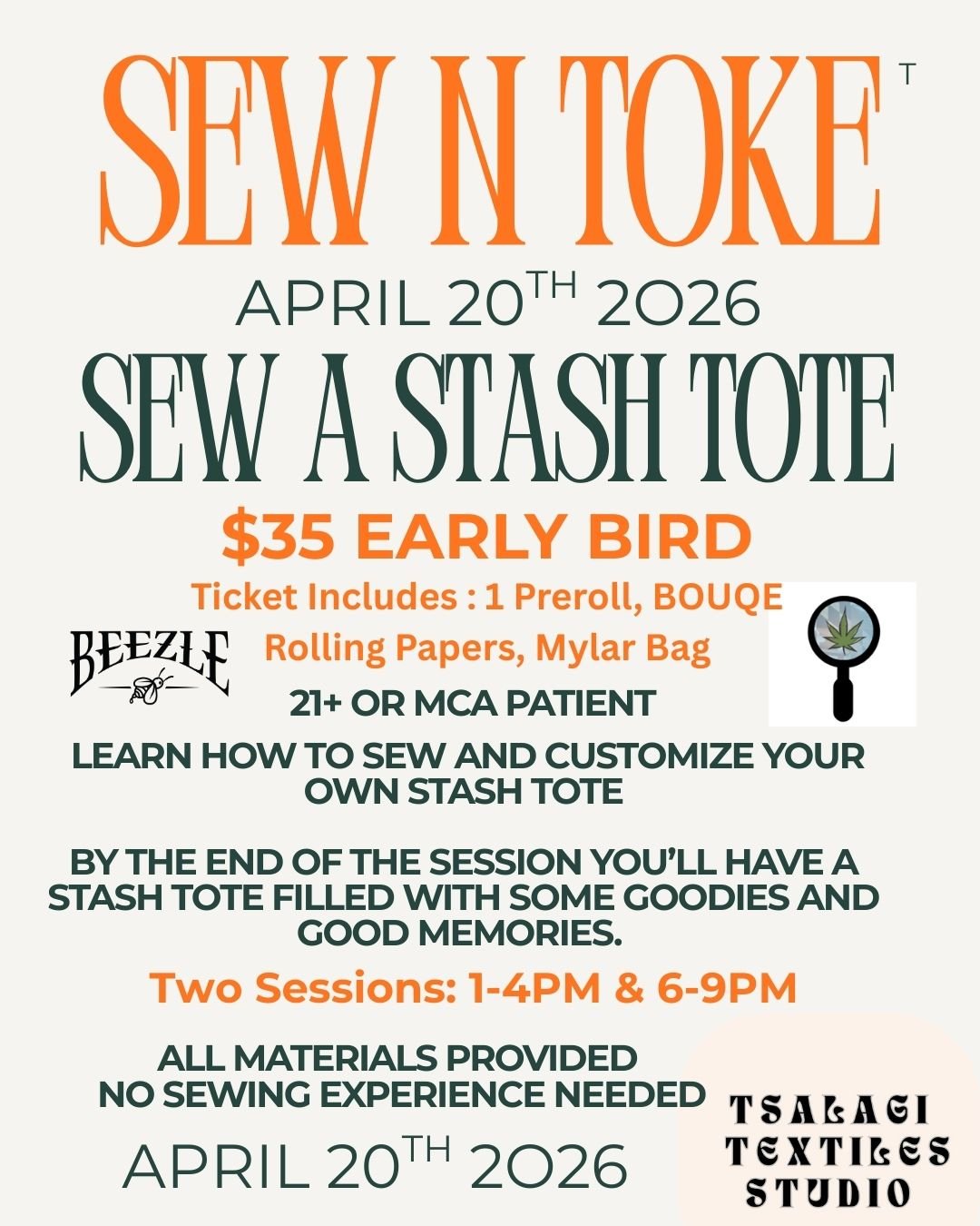 No sewing experience needed, you will be guided on how to sew a basic tote into your personal STASH TOTE while learning basic sewing techniques and engaging with hemp as a form of intersecting how we use hemp within the cannabis and sewing industries.